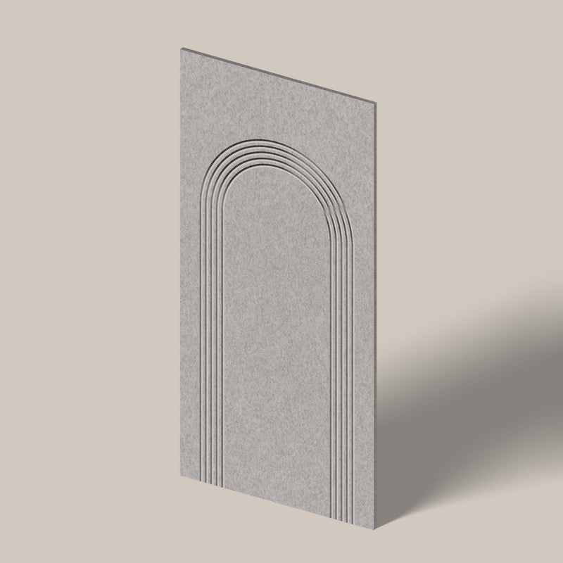 Een elegant boogmotief vormt het hart van Portal, geïnspireerd op architectonische poorten en tijdloze symmetrie. De gelaagde lijnen creëren diepte en rust, terwijl het PET-vilt zorgt voor aangename akoestiek in elke ruimte.