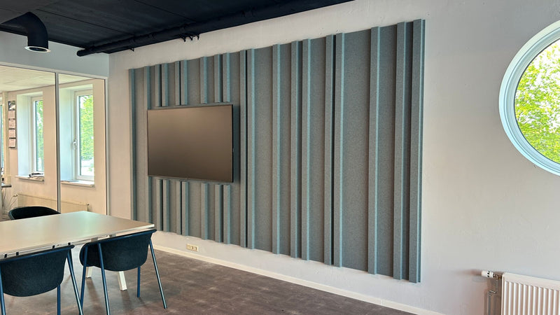 Dit akoestisch wandpaneel is opgebouwd uit hoogwaardig PET-vilt en kenmerkt zich door een strak, ritmisch lijnenspel in 3D. De verticale stroken creëren niet alleen een krachtig grafisch effect, maar dragen ook bij aan een optimale geluidsabsorptie in de ruimte.
